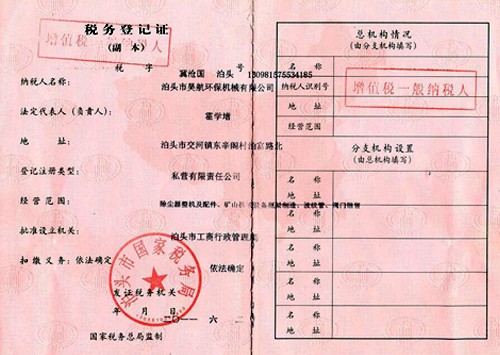 稅務登記證正本