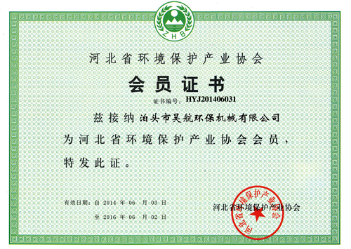 河北省環境保護產業協會會員證書