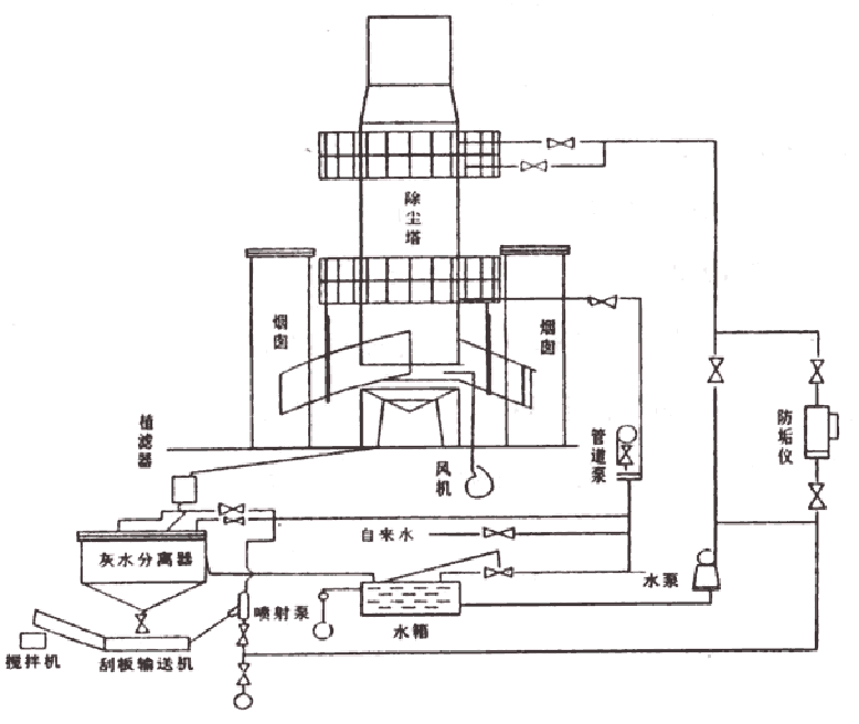 4,采用大水量除塵,促使循環(huán)水加快,這樣水溫較低,可解決管道結(jié)構(gòu),水蒸發(fā)量減少,并且除塵效果不好。